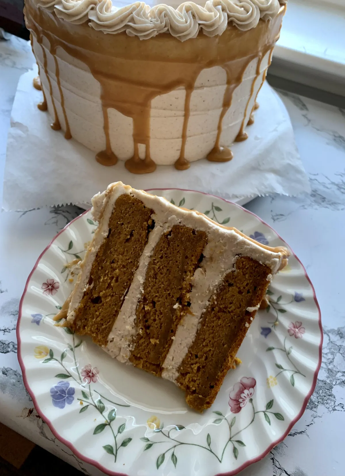 Two layers of the cake flavour of your choice, filled and frosted with a fluffy vanilla bean buttercream