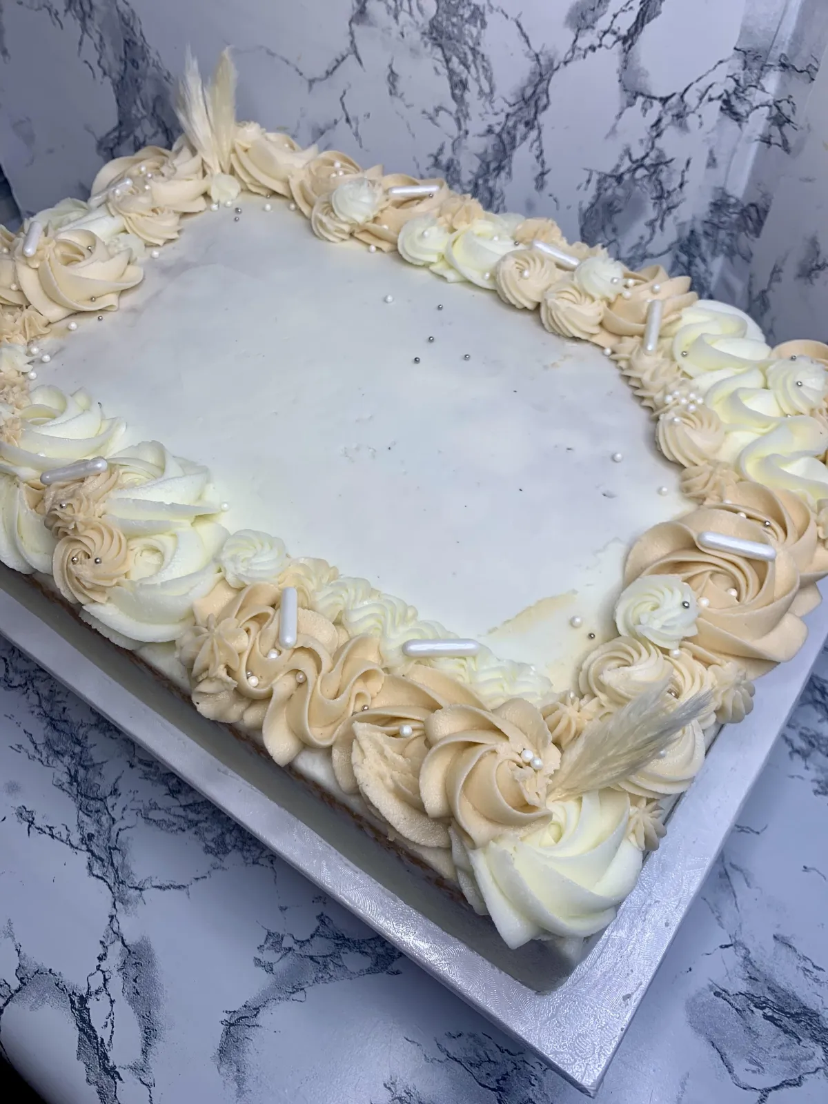 Sheet Cakes: Buttercream Accents: +$5 -- Whole Cake: +$10 -- Borders Only: +$10